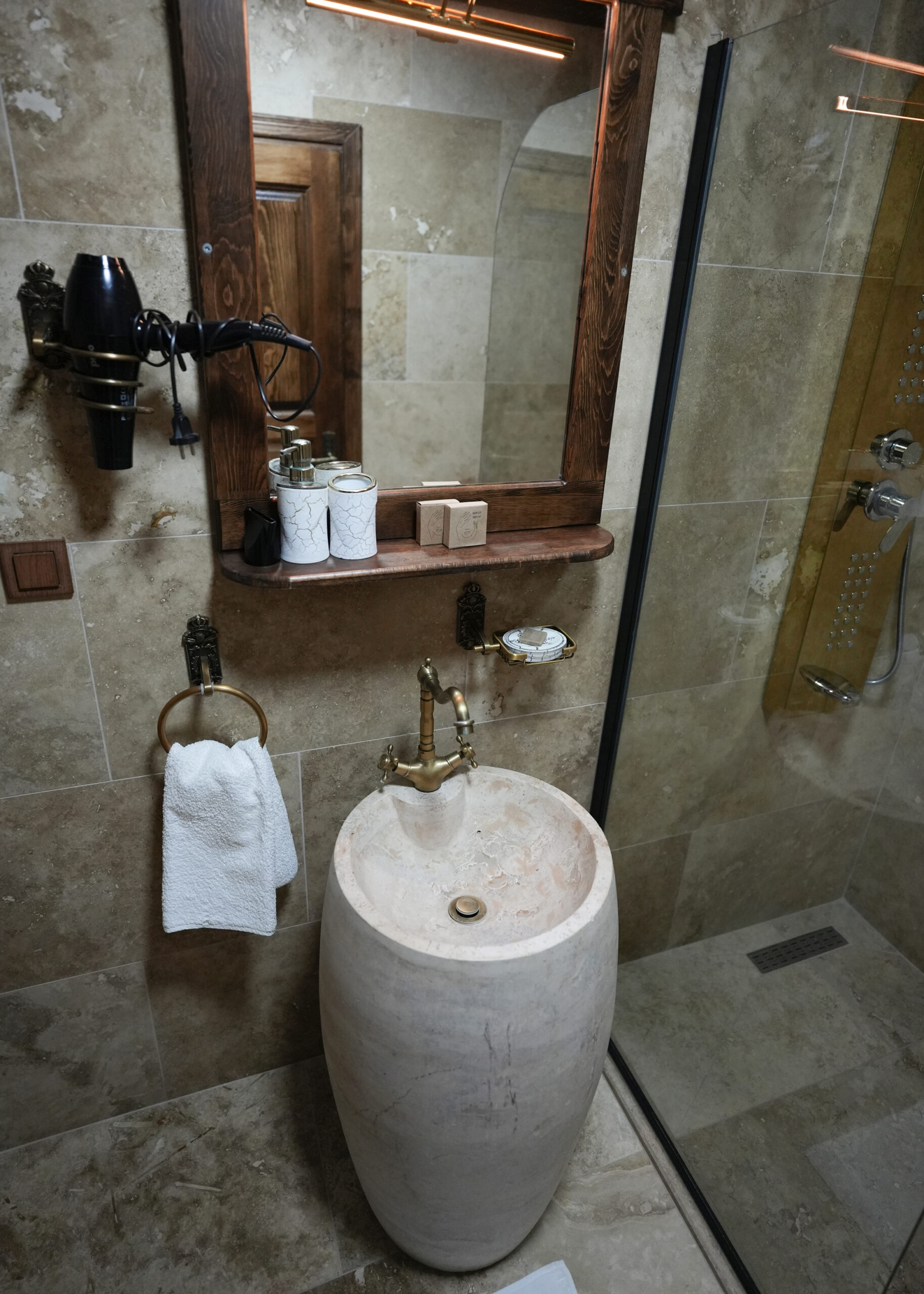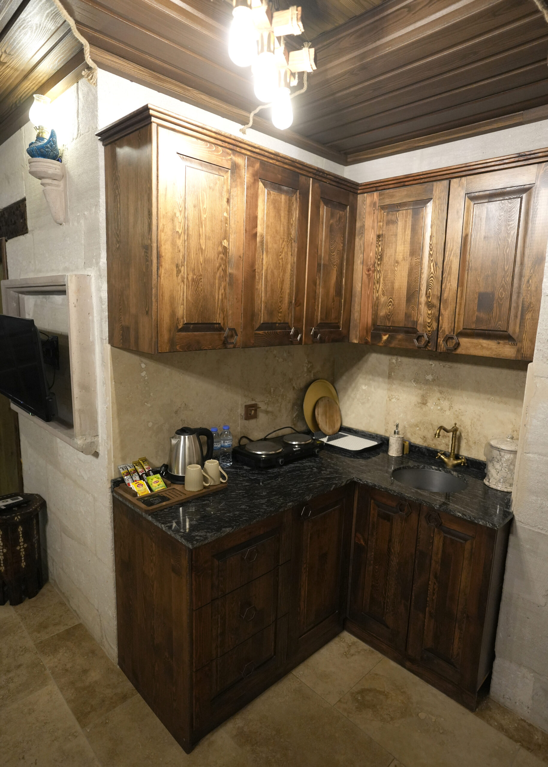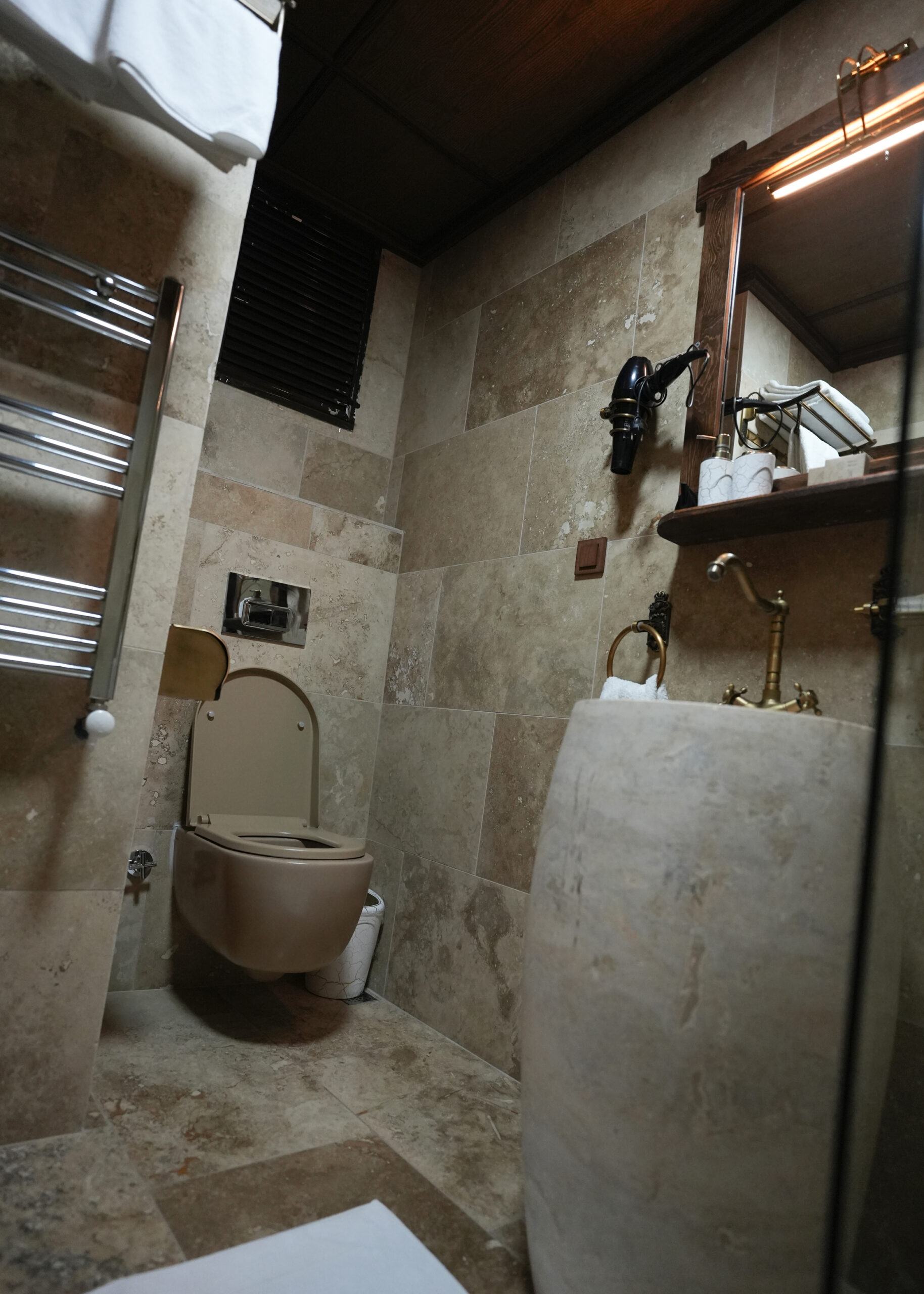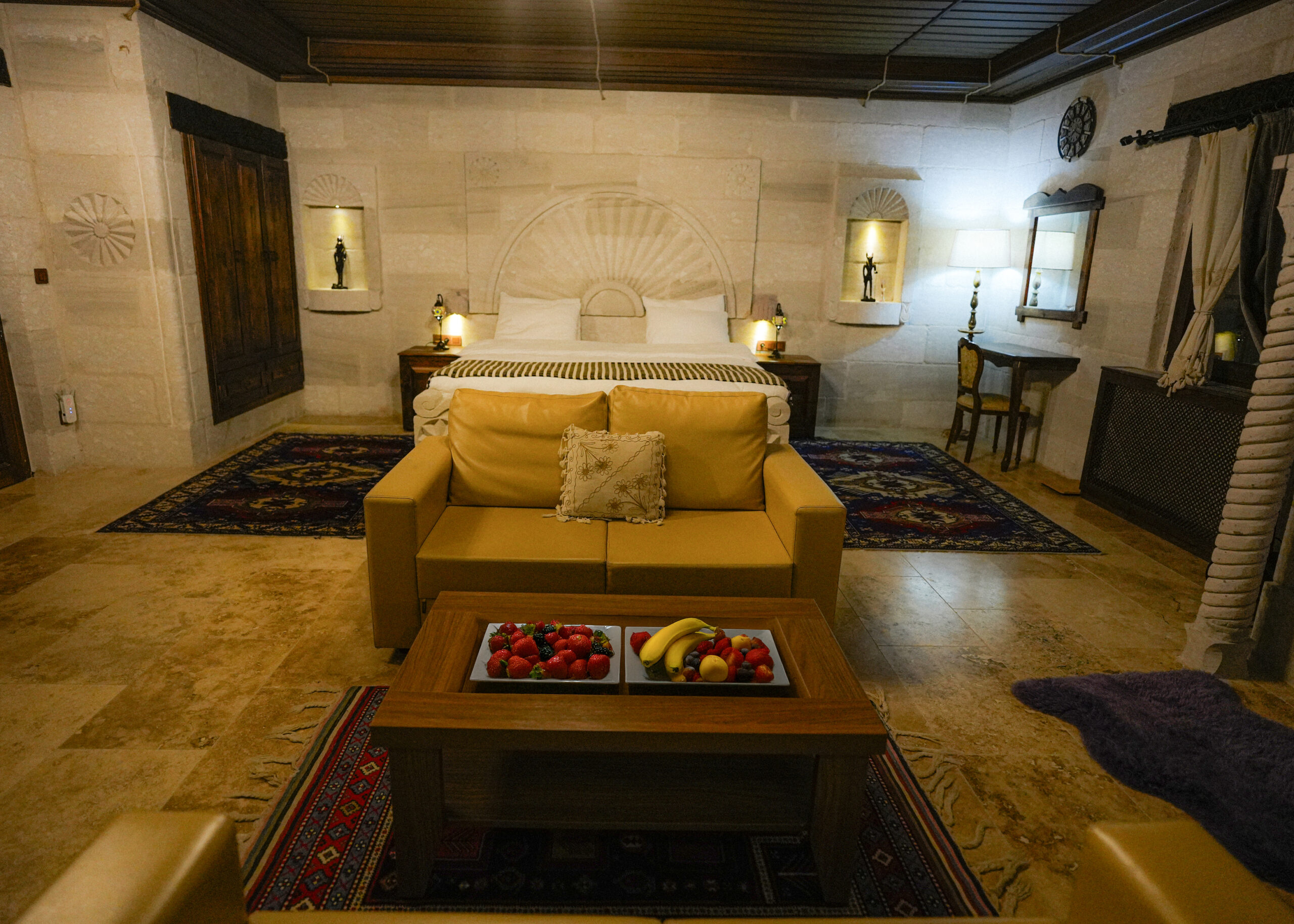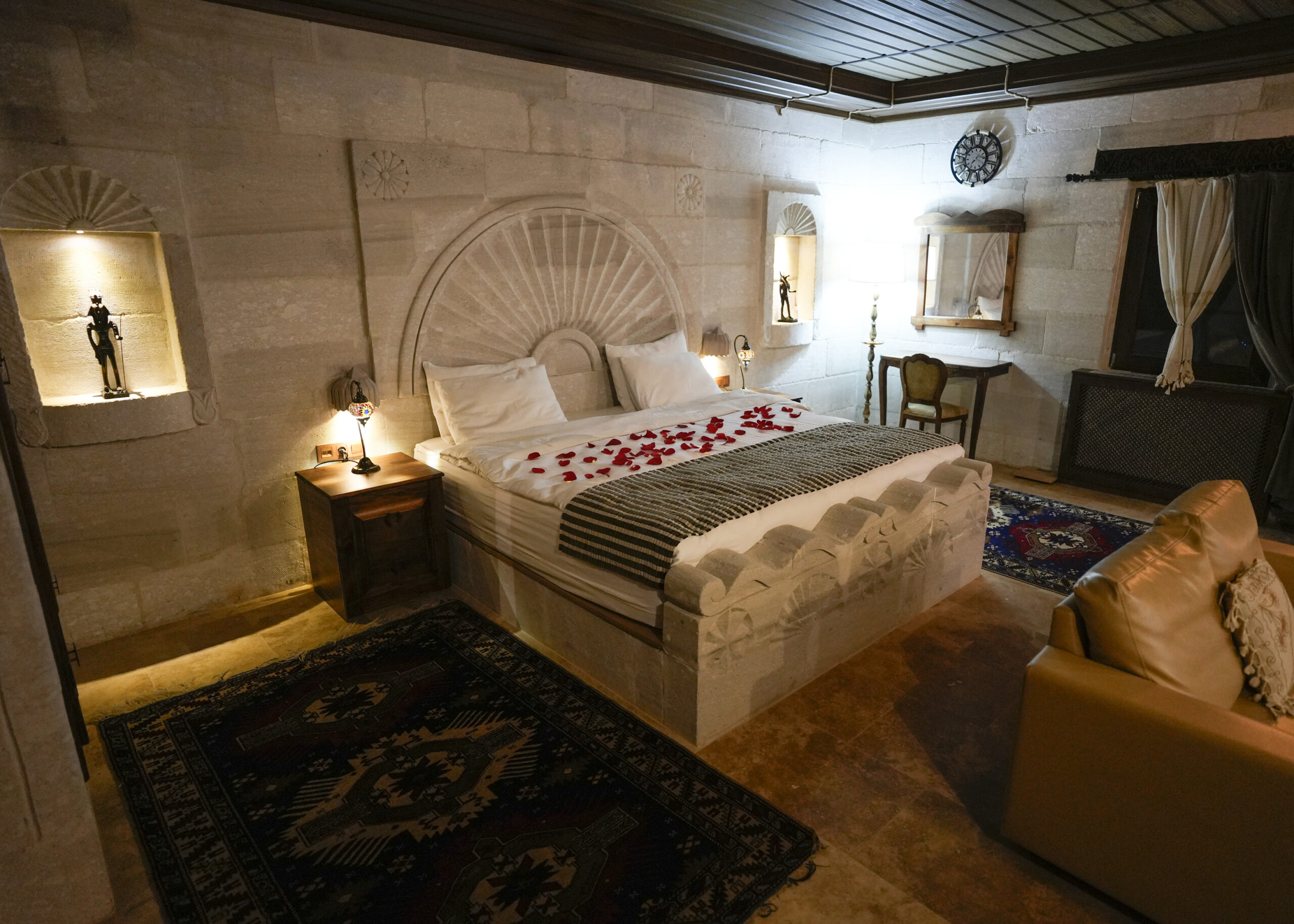 Odanın en ayrıcalıklı özelliklerinden biri olan özel jakuzi, günün yorgunluğunu atmanız ve tamamen rahatlamanız için size özel bir spa deneyimi sunar. Doğal dokularla dekore edilmiş bu özel alan, romantik ve huzurlu bir atmosfer yaratır.